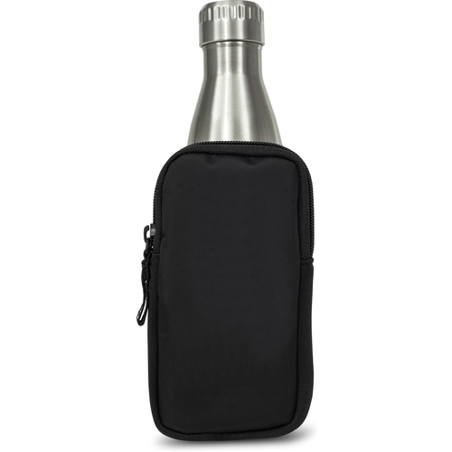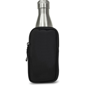 - Adjustable water bottle holder accommodates various sized water bottles.