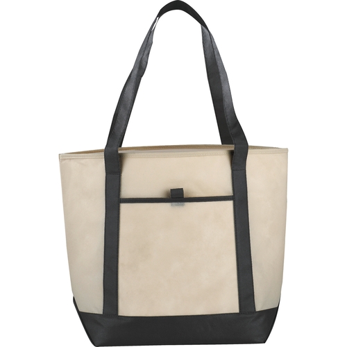 The Lighthouse Non-Woven Boat Tote features an open main compartment and a front pocket with a pen loop. Including double 24 inch handles, it's also reusable and a great alternative to plastic bags.