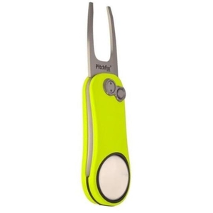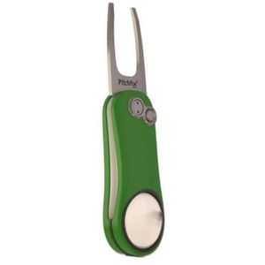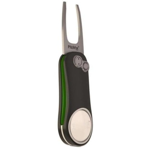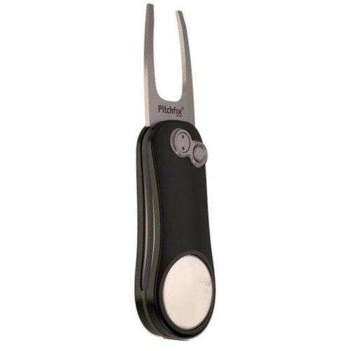 The Pitchfix Hybrid 2.0 Golf Divot Repair Tool is crafted from two aluminum sheets with a soft, rubberized ABS grip. The removable ball marker is customizable with your company's logo.