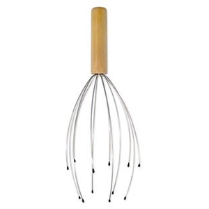 Relax and distress with our scalp massager. Features 12 legs with rubber tips and a wooden handle. Stimulates nerves on the scalp and neck and provides deep relaxation. The wooden handle can be pad printed with your company name or logo