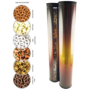 Satisfy your hunger and increase business with this tube of savory treats. It measures 18” x 3 1/8” and is a tower of delicious, assorted crunchy, salty, or sweet edibles! As tall as it is, your logo will get a prominent view after you use our digital print imprinting method. This is great to give out at a tradeshow. The height of the structure mixed with your eye-catching artwork is sure to draw the attention your company deserves!